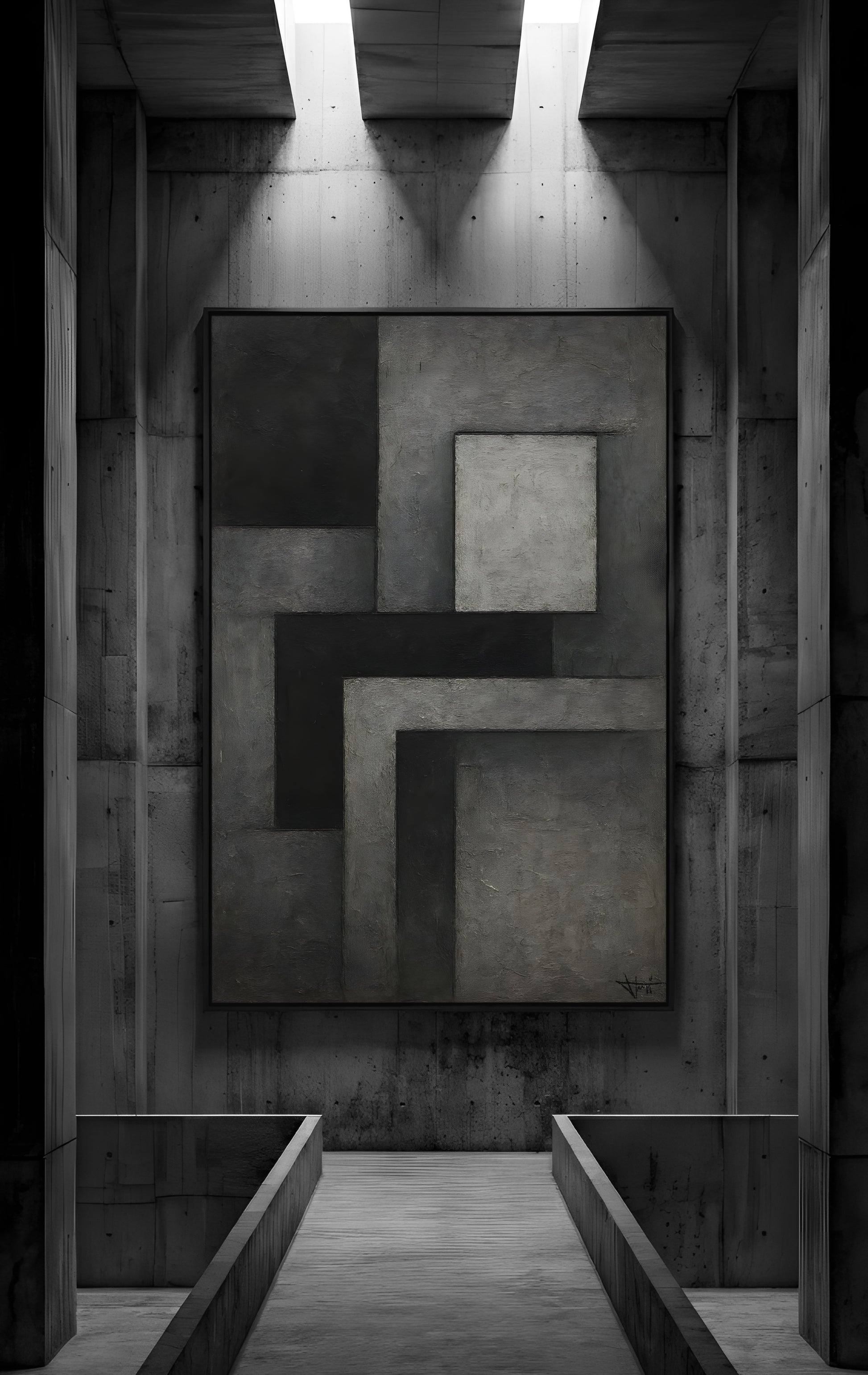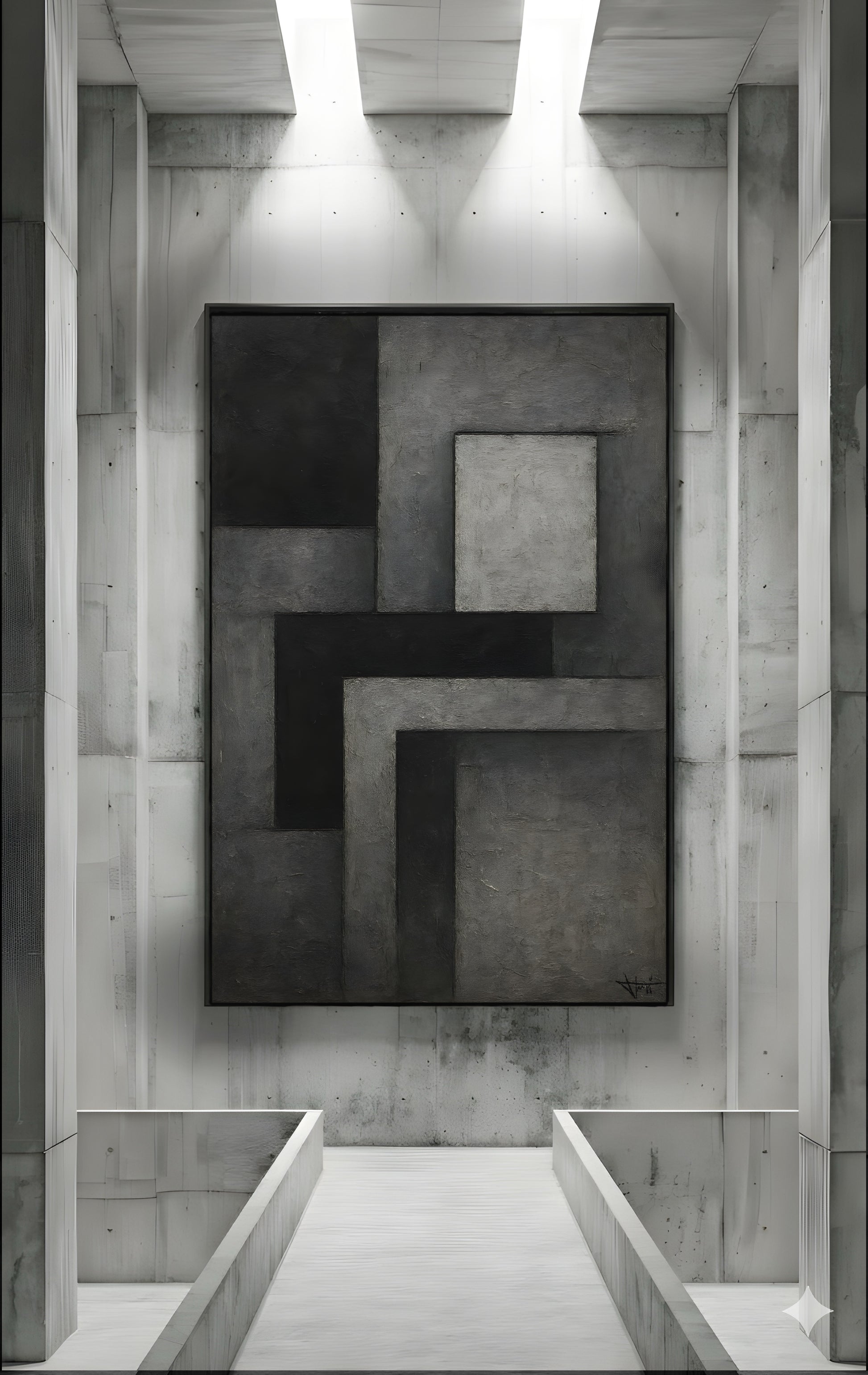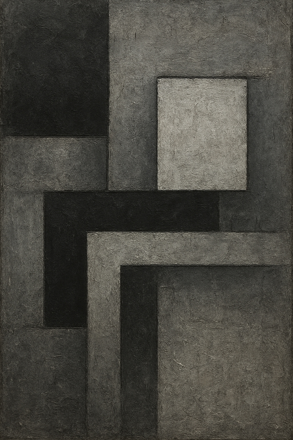 "TECTONIC-108" rejestruje tarcie między nachodzącymi na siebie blokami, tworząc wizualną reprezentację statycznego nacisku. Surowa, wielowarstwowa faktura powierzchni bezpośrednio nawiązuje do betonowych płyt konstrukcyjnych, eksponując brutalistyczny rygor kompozycji.